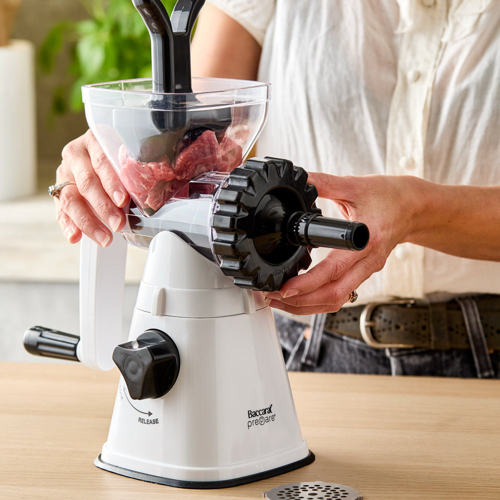 Create your own home made mince, burgers and sausages with the Baccarat® Prepare Meat Mincer. Perfect for the home chef and those who love fresh, customised ground meat, this versatile mincer allows you to prepare your next meal with ease. With multiple attachments including stainless steel cutting and mincing blades, and sausage tube, and a non slip suction base with locking mechanism for safety, the possibilities are endless.