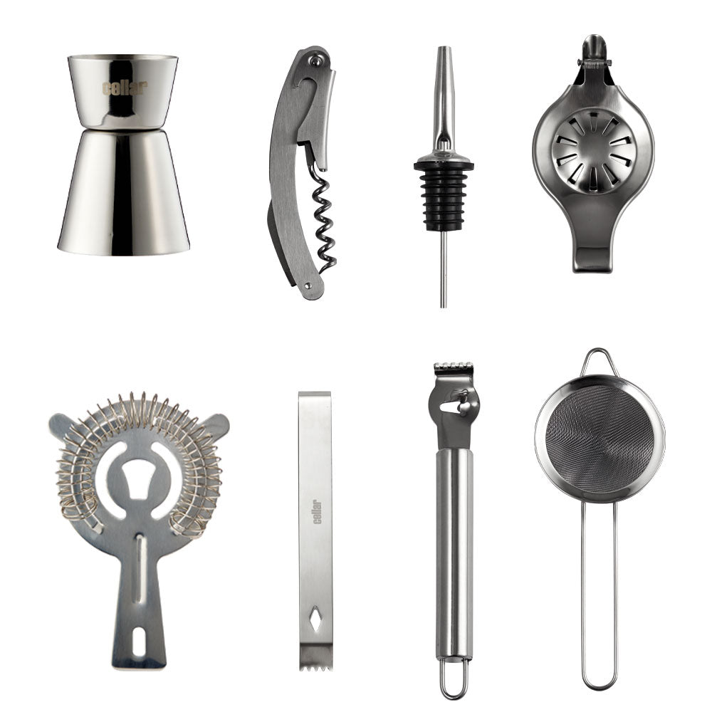 Create your favourite cocktails in style wherever you are! The Cellar Premium® Luxe 12 Piece Travel Bar Set is perfect for mixing and measuring professional cocktails on the go with a double jigger, a strainer, and a modern sleek shaker and all your essential tools. Made with professional mixologists in mind, this travel set is crafted from durable, food grade stainless steel with sturdy black carry case that doubles as a display for all your tools. The Cellar Premium® Luxe 12 Piece Travel Bar Set is beautifully boxed ready to gift for birthdays, weddings, and other special occasions. Cellar Premium® embraces sophistication and elegance with a collection of individually crafted glassware and bar accessories featuring unique pieces that enrich your drinking experience for any occasion.