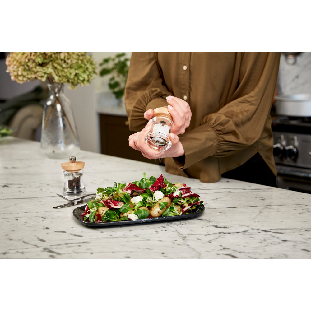 Made from durable acrylic and high-grade beech wood and standing only 95mm tall, with its squared edges and stainless-steel collar, the Cole & Mason Holborn 95mm Salt Mill has a contemporary and bold yet timeless aesthetic. Its innovative design and premium quality are synonymous with the Cole & Mason brand. The versatility of the acrylic finish makes this mill perfect for both traditional and modern kitchens. Easily adjust the grind from fine to coarse by turning the knob on the top of the mill. Made from durable acrylic and high-grade beech wood.