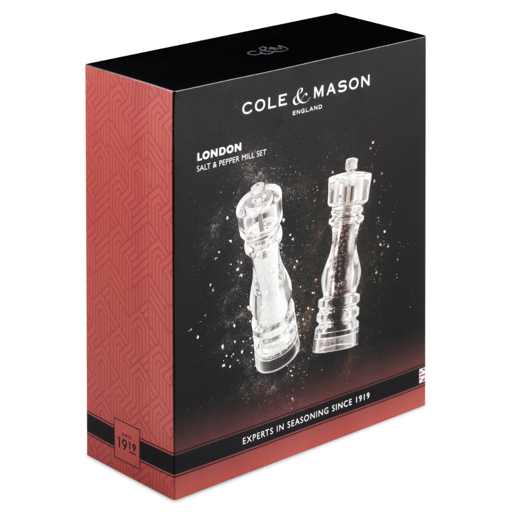 Made from high quality, durable acrylic, Cole & Mason London Acrylic Gift Set honours our heritage as well as looks to the future with a classic, yet contemporary aesthetic which will prove a stylish addition to both traditional as well as modern kitchens. The grinding mechanisms (sharp anti-corrosion ceramic for salt, design registered Precision+ carbon steel for pepper) are supported by a lifetime guarantee.