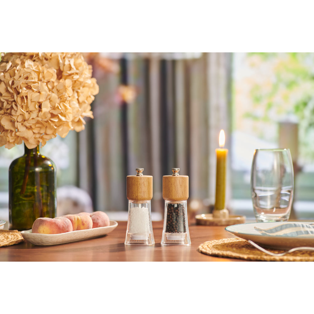 Styled for modern life, the Cole & Mason Woodbury Gift Set will never date. An original design, finished in acrylic and beech wood - it is perfect on dining tables, worktops and bars alike. The ceramic mechanisms provide consistent grinds and are adjustable from coarse to fine.