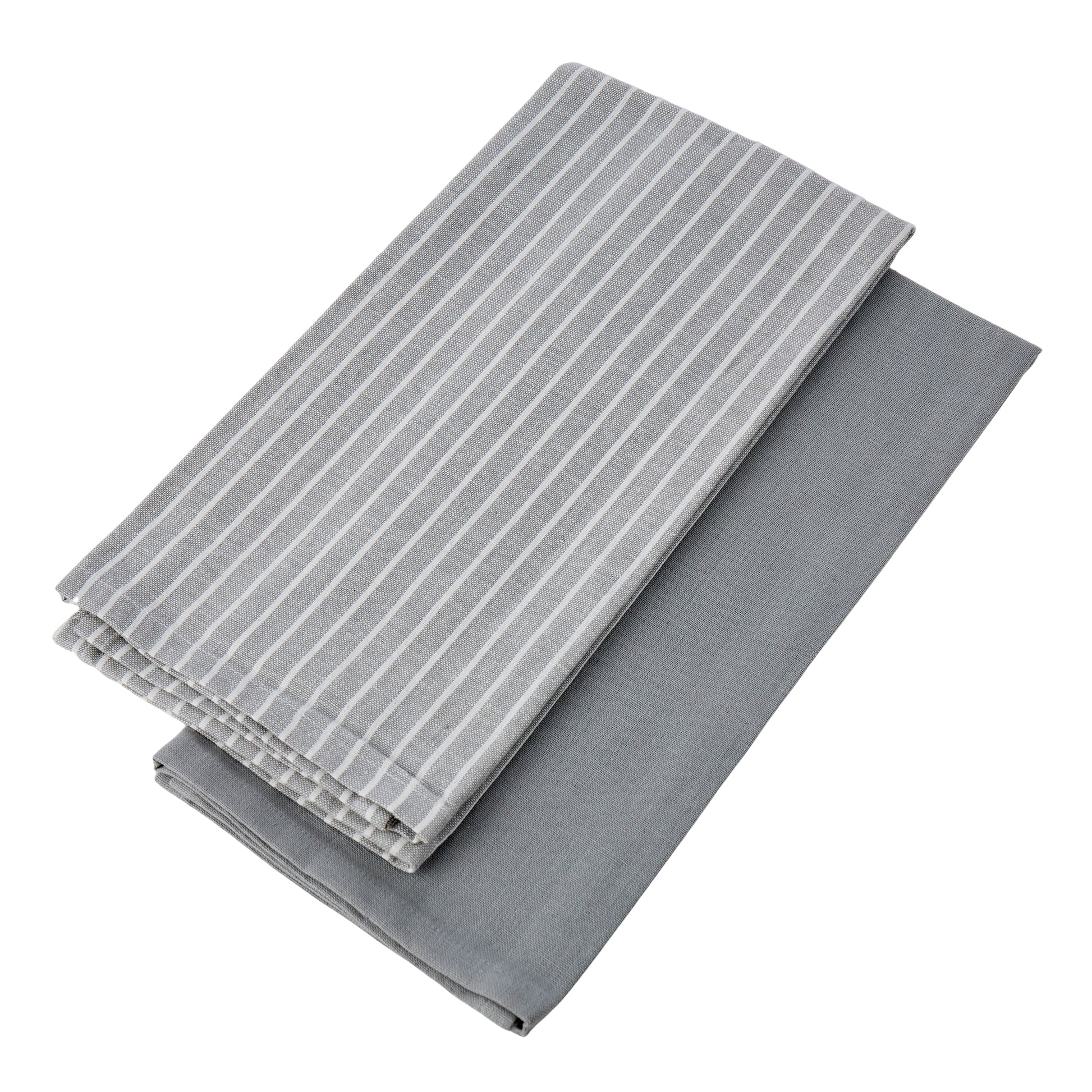 Our range of D&W tea towels is extremely versatile – use them to dry dishes and display our stylish in-house designs when not in use. This Butcher Stripe Tea Towel Set is the perfect accessory for both solo cooking and entertaining friends and family. Made from 100% cotton, one tea towel features a vertical butcher shop-style grey and white striped print while the other is solid taupe. These highly absorbent towels can be used to dry kitchen surfaces, mugs, plates, pots and pans with a touch of classic style. This range comes in three different colours with matching oven glove, double oven glove and apron – mix and match them all to complete the look! Liven up your cooking with this colourful Butcher Stripe Tea Towel Set from Davis & Waddell.