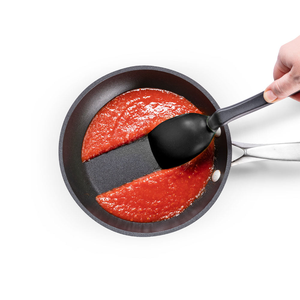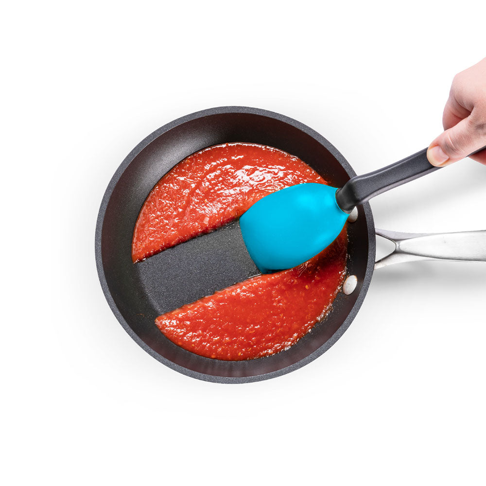 • Flat silicone scraping tip and flexible squeegee sides scrape out every last piece of food from your pan or bowl.