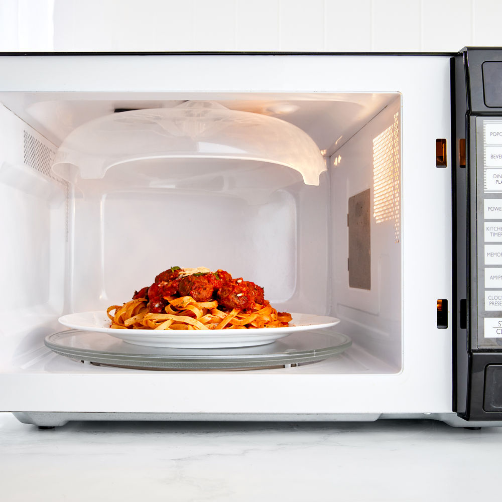 Leave messy leftovers in the past with the Fresh De Chef Splatter Guard Food Cover. Your microwave will be splatter free and require less cleaning every time you use this handy splatter guard to heat your foods. Constructed from food grade plastic, it is microwave safe so you can heat away time after time. Equipped with a handy magnet, simply attach to the roof of your microwave and press start. Alternatively, place over your dish to prevent messy splatters and spills. For ease of use, the Fresh De Chef Splatter Guard Food Cover is both microwave and dishwasher safe.