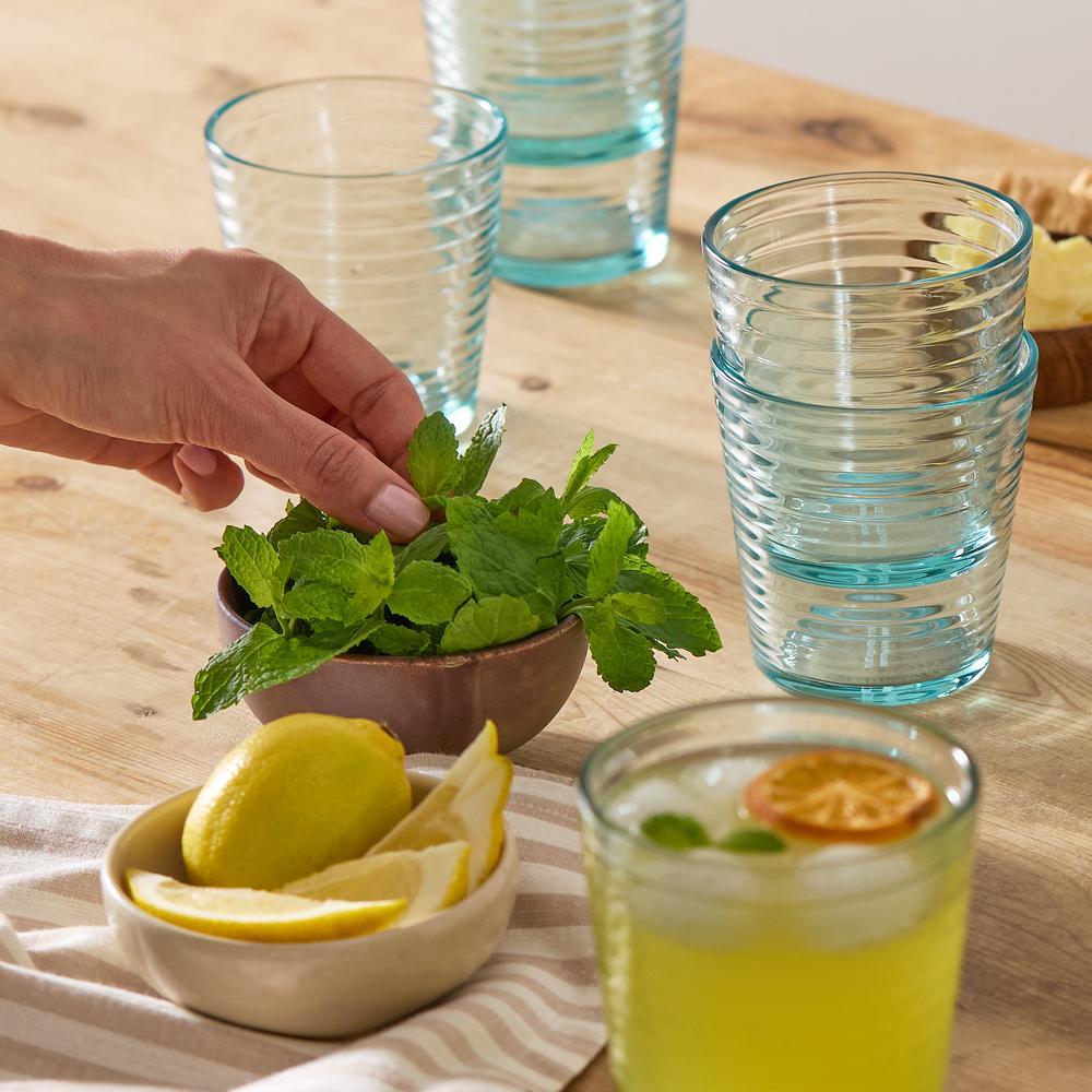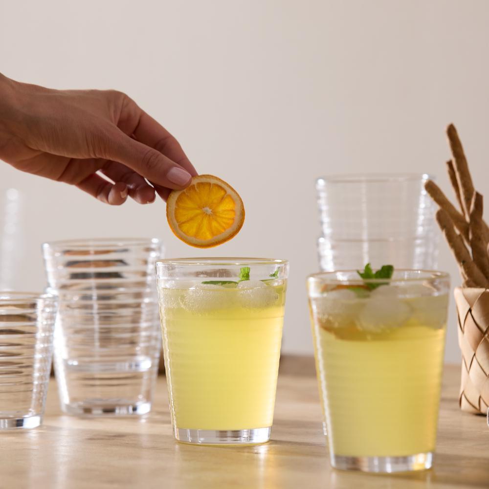 This set of four clear glass hiballs are part of the Gordon Ramsay Maze Glass Collection by Royal Doulton. Decorated with the iconic embossed concentric circles of the Maze design, these glasses are designed to mix with other tableware pieces from Royal Doulton’s Maze collection.