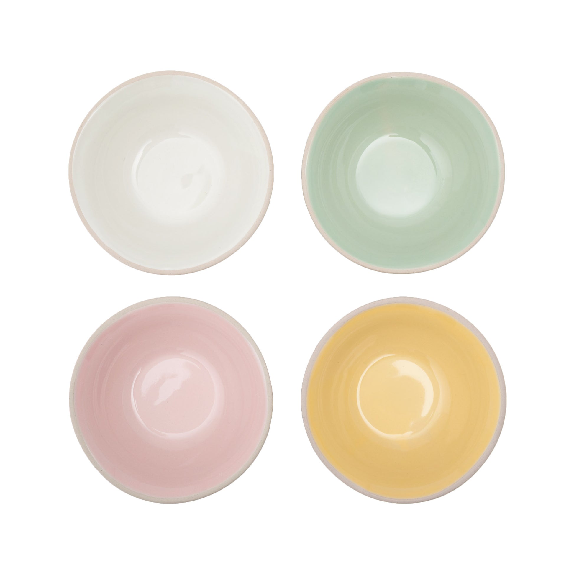 • SUPER VERSATILE: Spread the love and use these lovely little bowls for snacks, tapas, dips and nibbles• MADE TO LAST: Durable stoneware bowls with a stunning glaze and raw stoneware edge in four beautiful colours such as pretty pink, soft white, calming green and cheerful yellow
