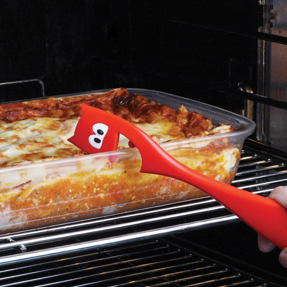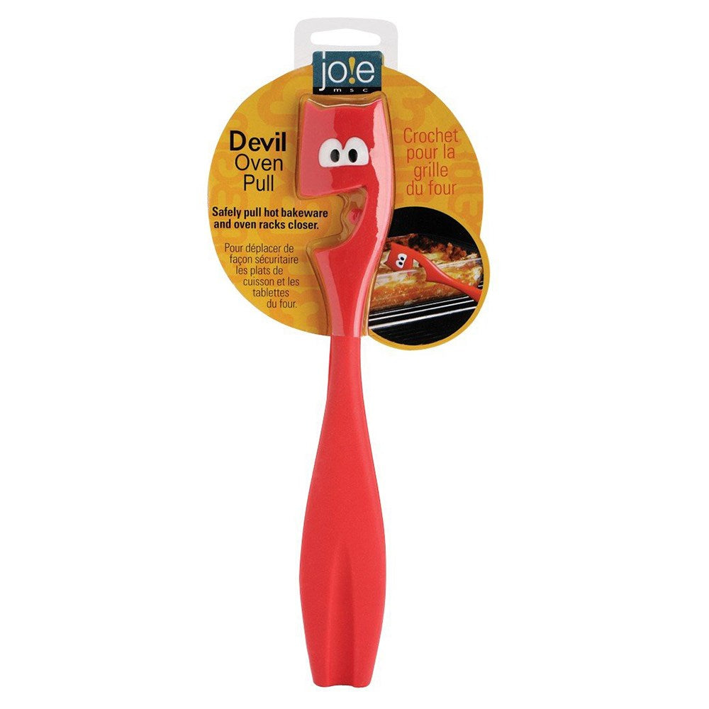 Safely get to hot oven racks and bakeware with the Joie Devil Oven Pull. The heat resistant silicone will withstand up to 280 degrees Celsius while also being sturdy and durable. The open-mouth design safely pulls hot oven racks and bakeware closer will easily hook over dishes or racks in the oven to help you bring them to a more manageable distance. The contoured slip resistant handle is reliable and easy to hold. Available in a fun devil design in a bright red colour, making it easy to spot in your utensil drawer. Avoid the heat when pulling items out of the oven with the Joie Devil Oven Pull.