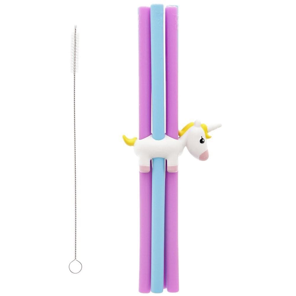 Joie Unicorn 6 Piece Silicone Straw Set with Holder & Cleaning Brush