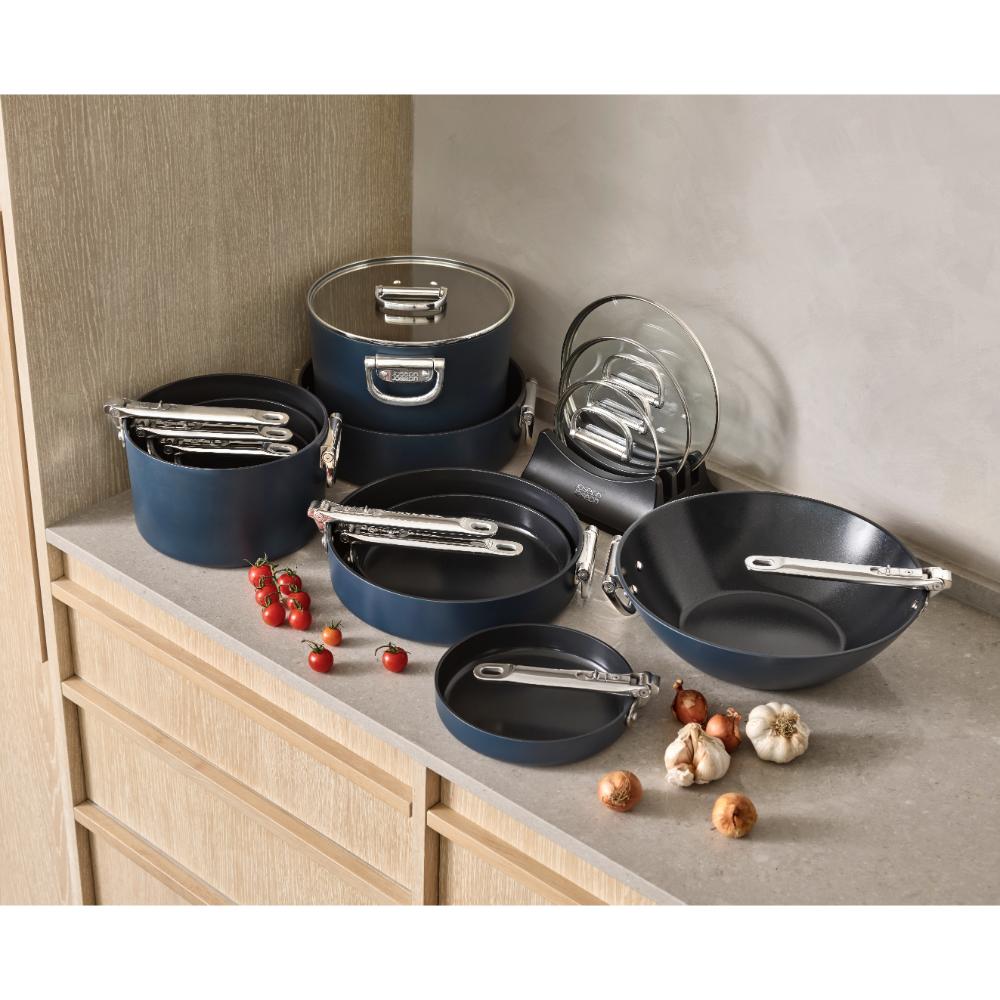 Goodbye clutter, hello Space! This 15 cm (1.3L) non-stick saucepan has a clever, folding stainless-steel handle that saves up to 50% more space than a standard pan when stored. Engineered to last, the handle features our patented and fail-safe SwingLock™ Mechanism that locks the handle securely into position during use and optimises space when folded. When it comes to cooking performance there's no compromise either. The professional quality, heavy-gauge aluminium body ensures even heat distribution that eliminates hot spots and is built to last. The high performance, ceramic non-stick coating is super durable, easy to clean and allows you to achieve exceptional cooking results. It's healthier to cook with too as it's free from PTFE, PFAS, PFOA, Lead and Cadmium, which means you can prepare all your favourite recipes with confidence. It comes with a tempered glass lid that also has a folding handle, making storage even easier. Suitable for all hob types, including induction, this pan is part of the Space cookware range - created for cooks, made for storage.