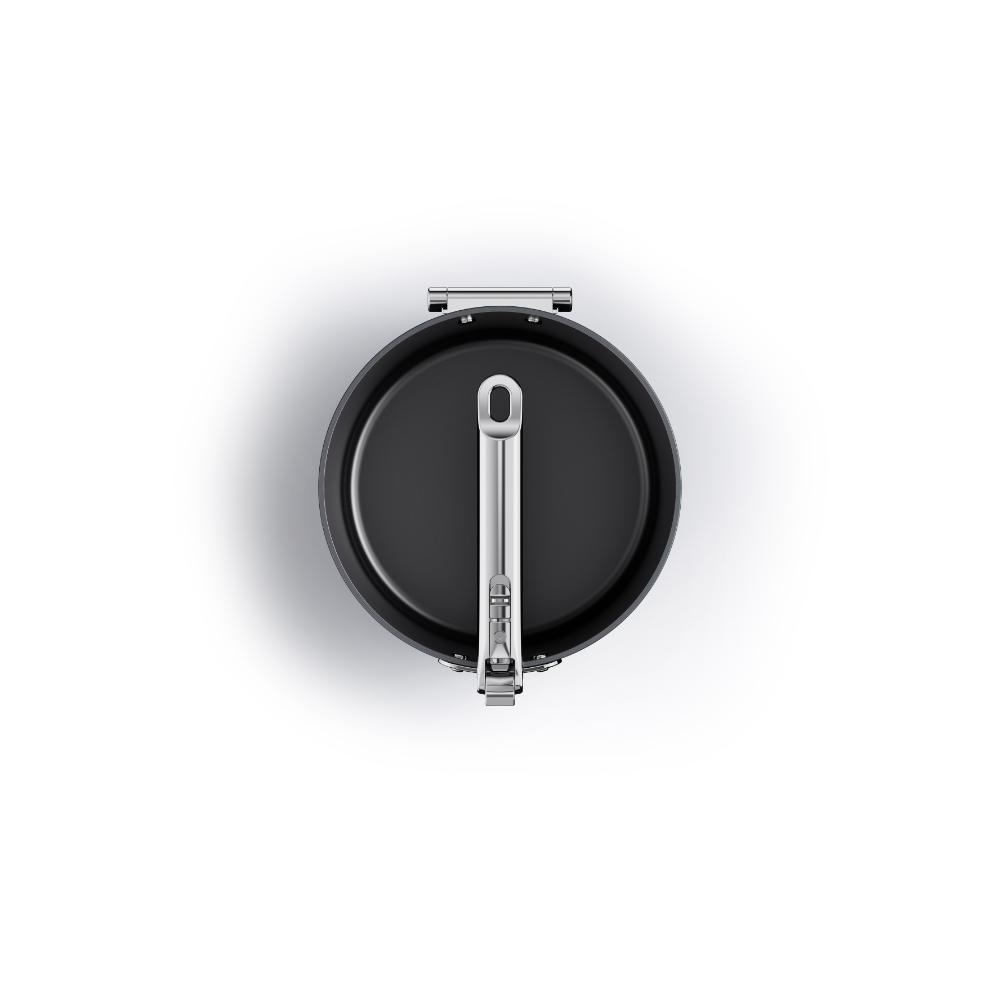 • Folding stainless-steel handle saves up to 50% more space than a standard pan and 20-year lifetime tested