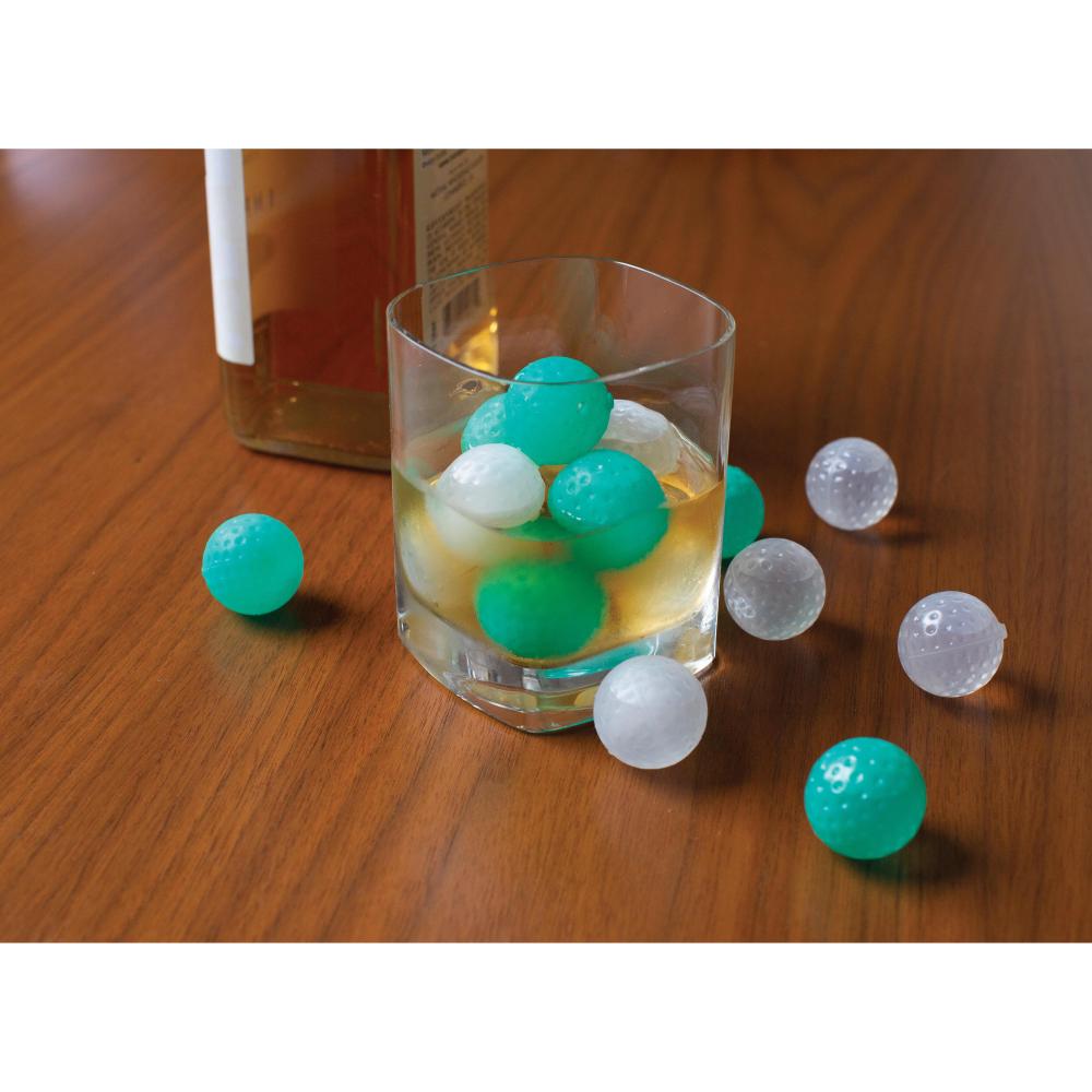 Kikkerland Set of 24 Golf Ball Ice Cubes will keep your drink cold for 18-holes! Freezable and reusable, each set comes with 24 durable plastic golf balls. Filled with distilled water. Never waters down your drink.