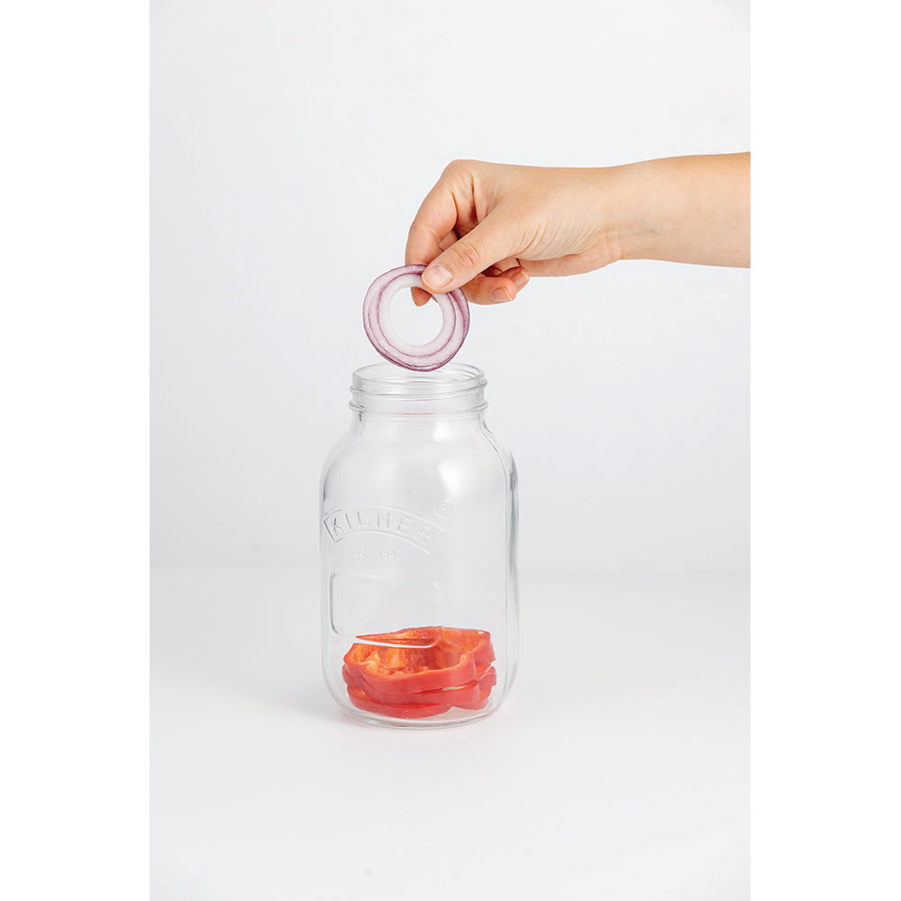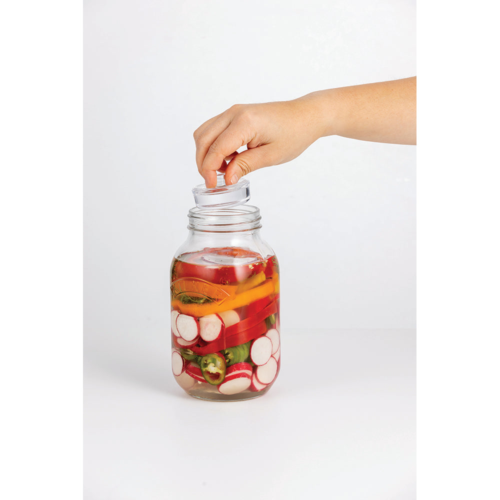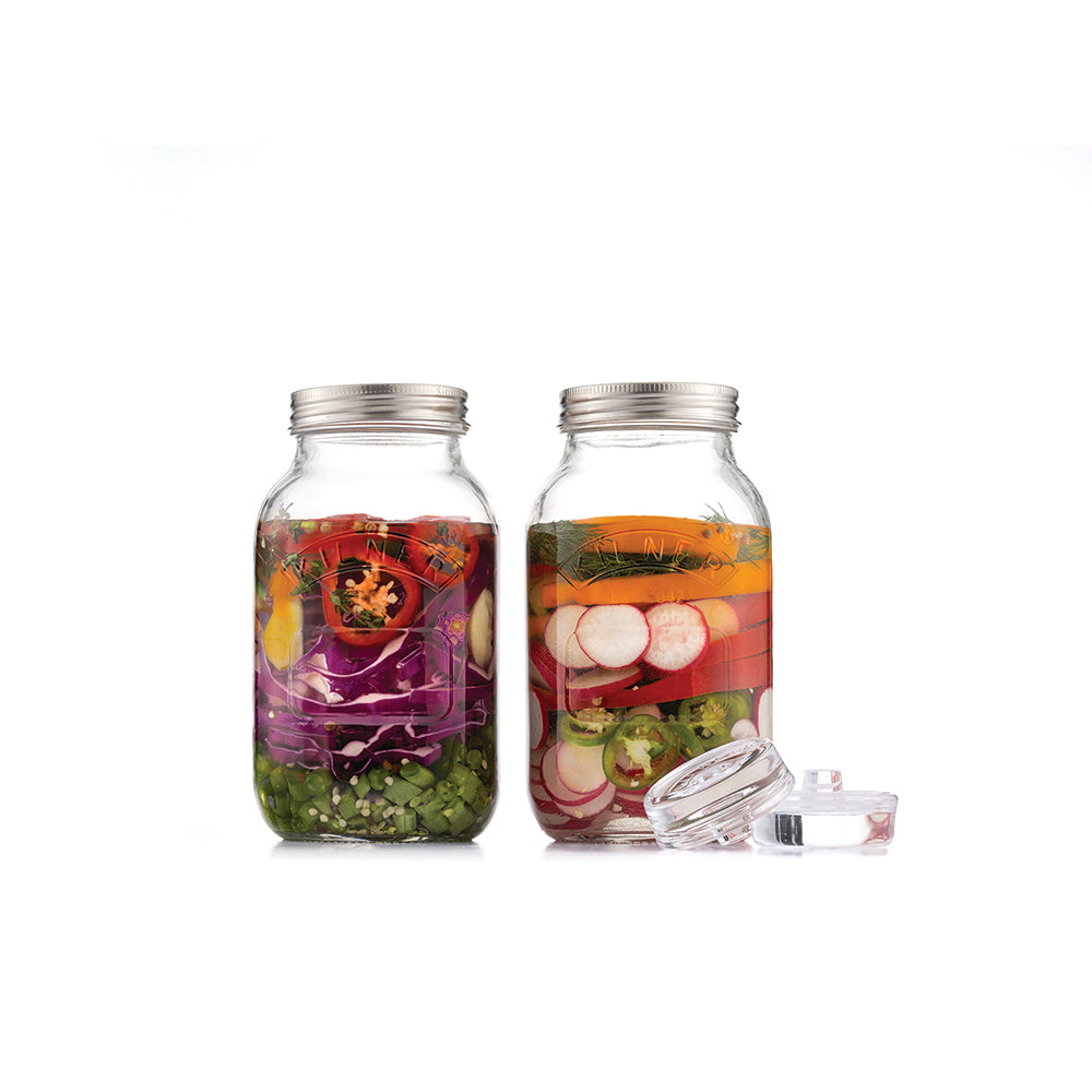 - Includes: 2 x 1L jars, 2 x glass weights, 2 x stainless steel lids with silicone valves, 1 x recipe book