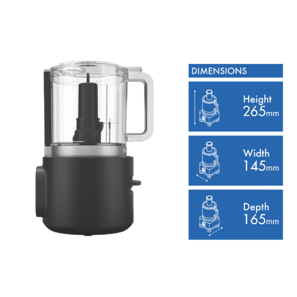 The power to make. The power to move. Create anywhere using the KitchenAid Go™ Cordless Food Chopper. Powered by a rechargeable 10.8V max lithium ion powered removable battery^, the new cordless food chopper delivers 25 minutes of continuous run time* and performance, so you can cook wherever, whatever, and however you choose