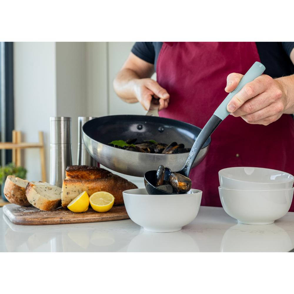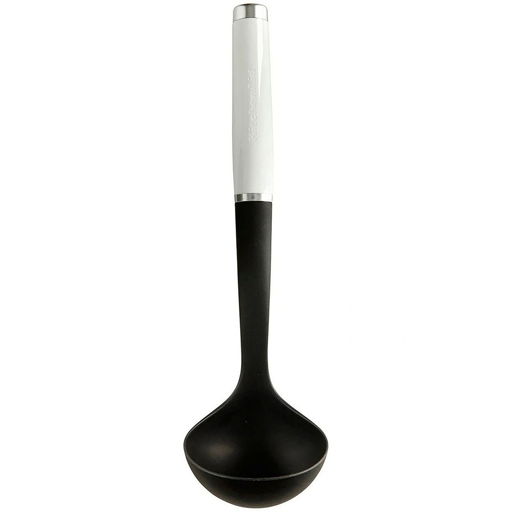 Introducing the KitchenAid Nylon Ladle, the perfect kitchen companion for effortless soup, sauce, and gravy serving. Crafted from highly durable nylon, this ladle is designed with a long handle and a deep bowl for precise pouring. With a heat-resistant capacity of up to 232?, it's ideal for use around hot pans and foods. Plus, its non-scratch design makes it safe for all cookware, including non-stick surfaces. The sleek ABS handle is available in classic White and bold Empire Red, adding a touch of style to your culinary adventures. Choose durability, functionality, and aesthetic appeal with the KitchenAid Nylon Ladle.
