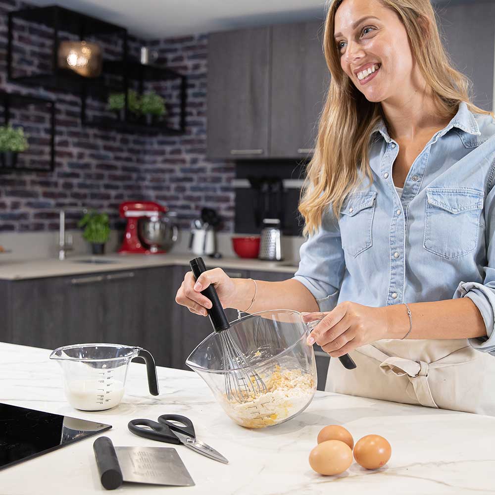This KitchenAid Stackable Measuring Jug Set includes three different sizes: 1 Cup (250ml), 2 Cups (500ml) and 4 Cups (1000ml). The jugs are BPA-free and feature easy-to-read measurement markings. Each jug features integrated pouring spouts. They measure both wet & dry ingredients.