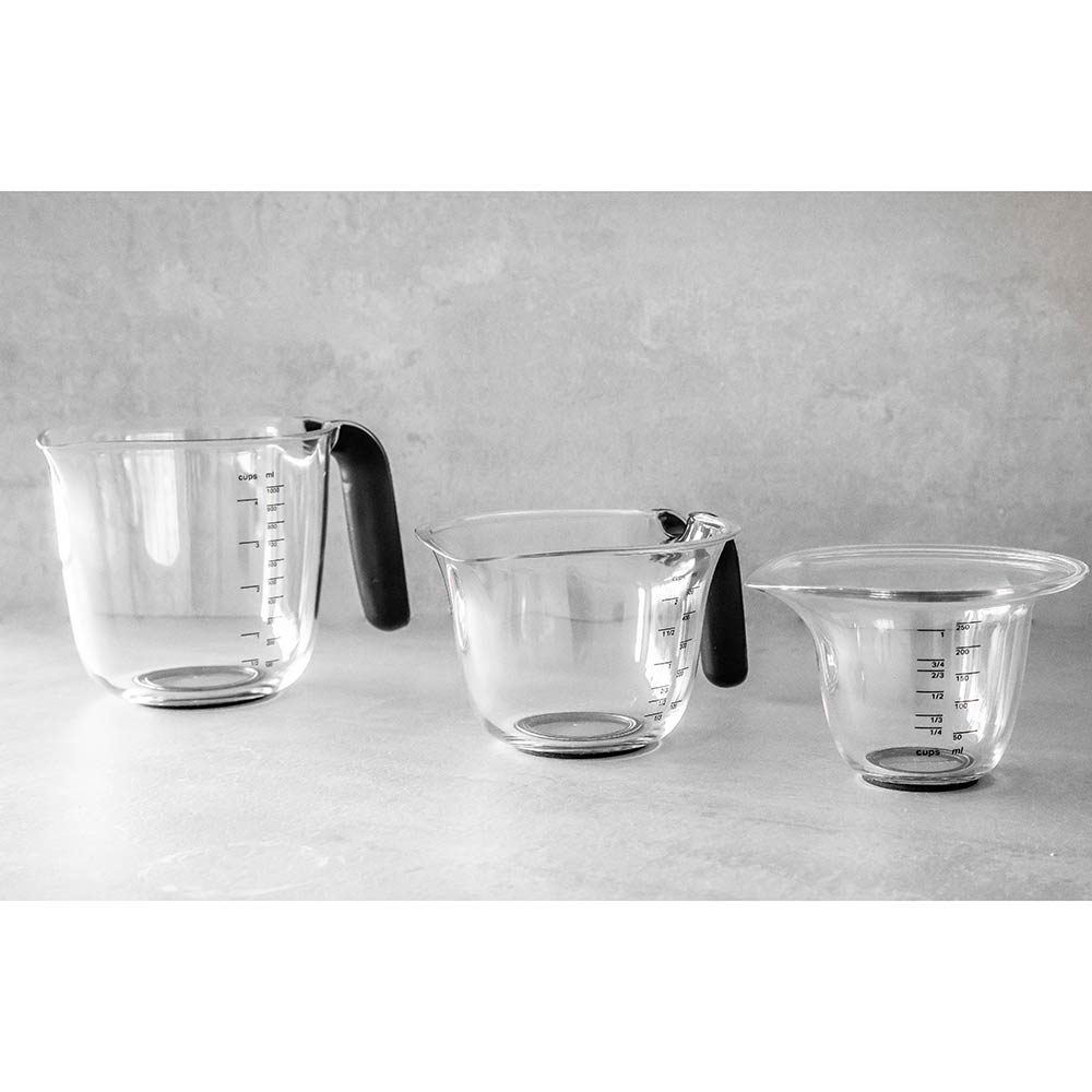 Set of 3 Measuring Jugs for baking & cooking: 1 Cup (250ml), 2 Cup (500ml), 4 Cup (1000ml)