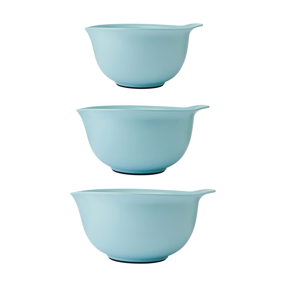 • Nesting bowls with non-slip bases for stability and pouring spouts