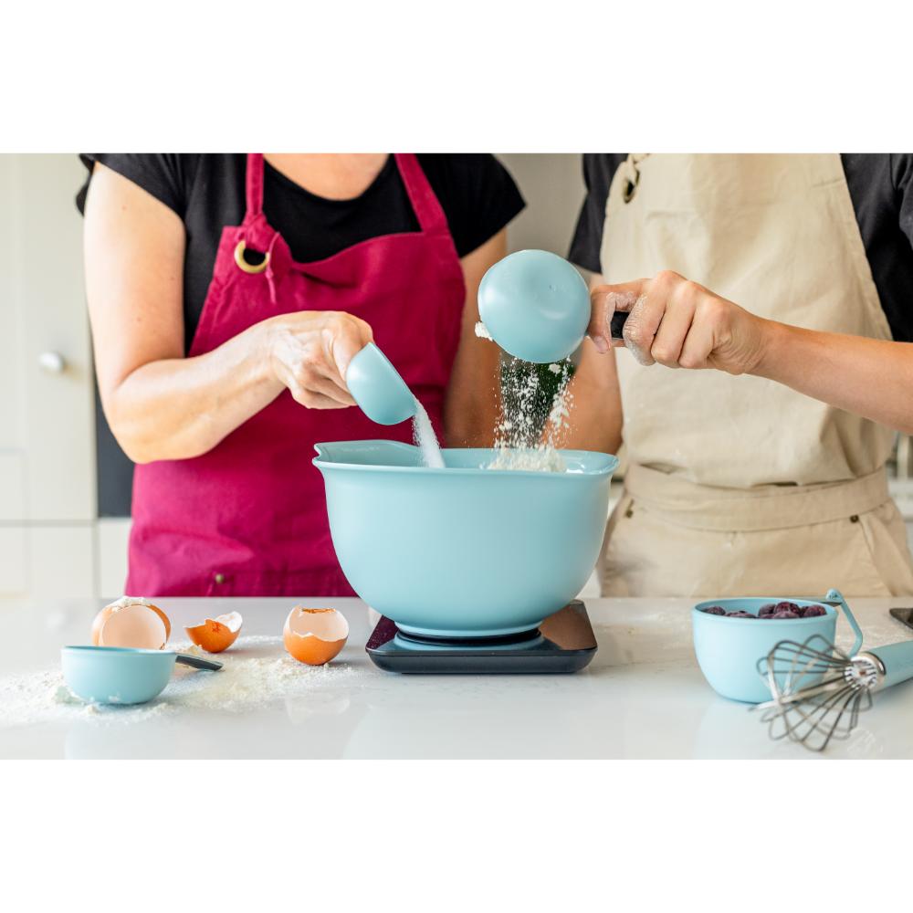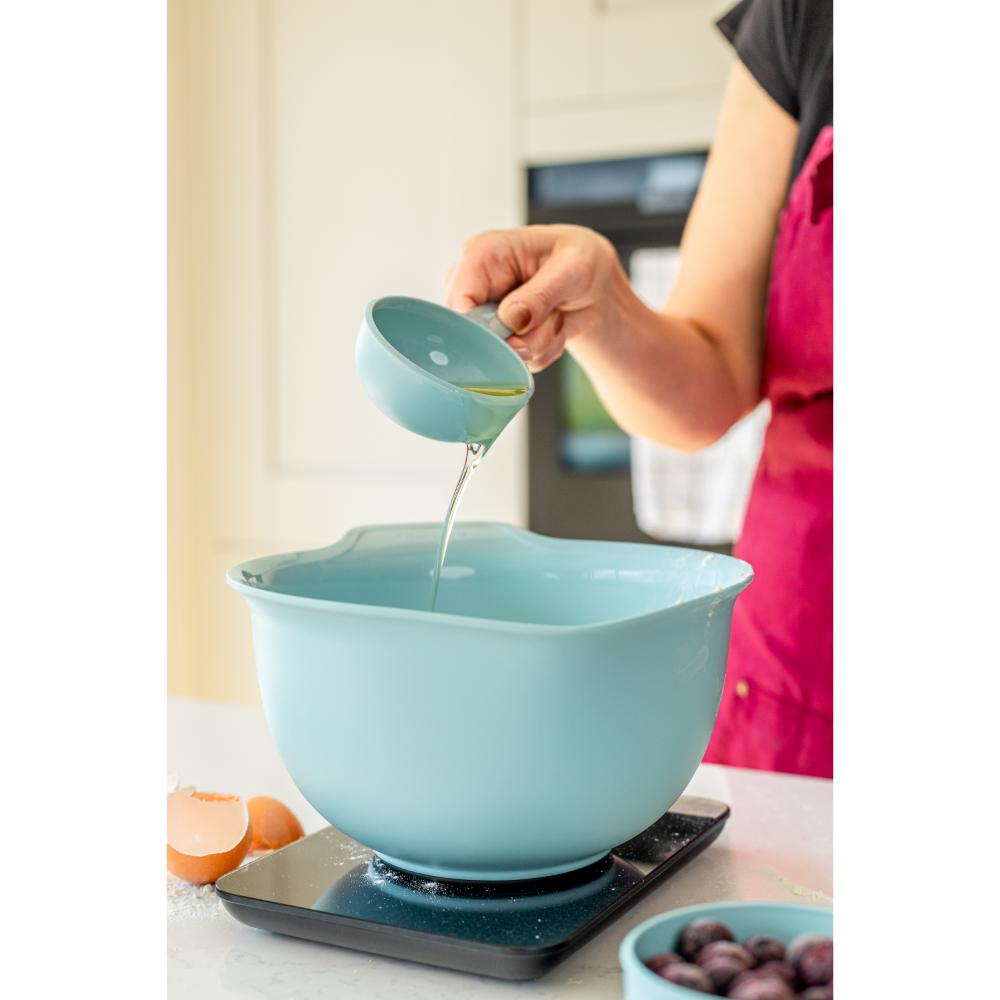 This KitchenAid Measuring Cup Set includes four different cup sizes: 1 Cup (237ml), ½ Cup (118ml), ⅓ Cup (79ml) and ¼ Cup (59ml). These cups work with both wet and dry ingredients.