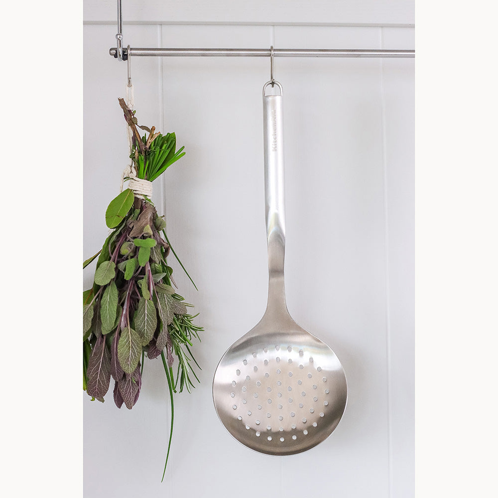 Discover the incredible capabilities of the KitchenAid Stainless Steel Strainer, crafted from premium quality stainless steel for unmatched durability. The KitchenAid Stainless Steel Strainer is a versatile tool that completes a multitude of tasks including draining veggies, washing rice and more. Easy to use and effortless to clean, you can pop this strainer in the dishwasher without worry. Plus, the integrated loop ensures effortless hanging storage, keeping your kitchen organised and your cooking experiences smooth. Elevate your culinary game with the KitchenAid Stainless Steel Strainer.