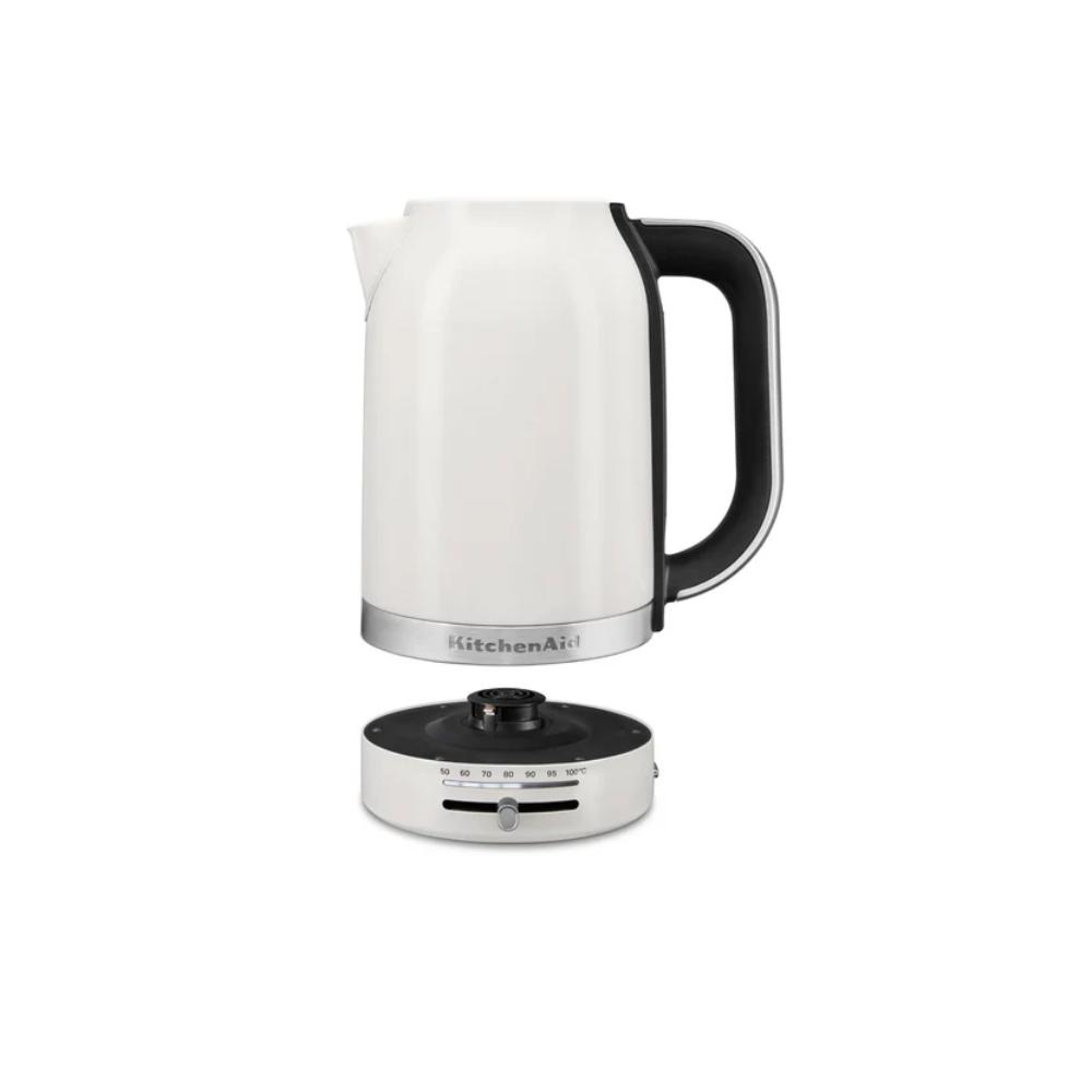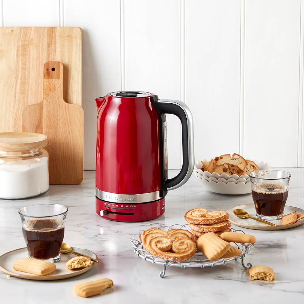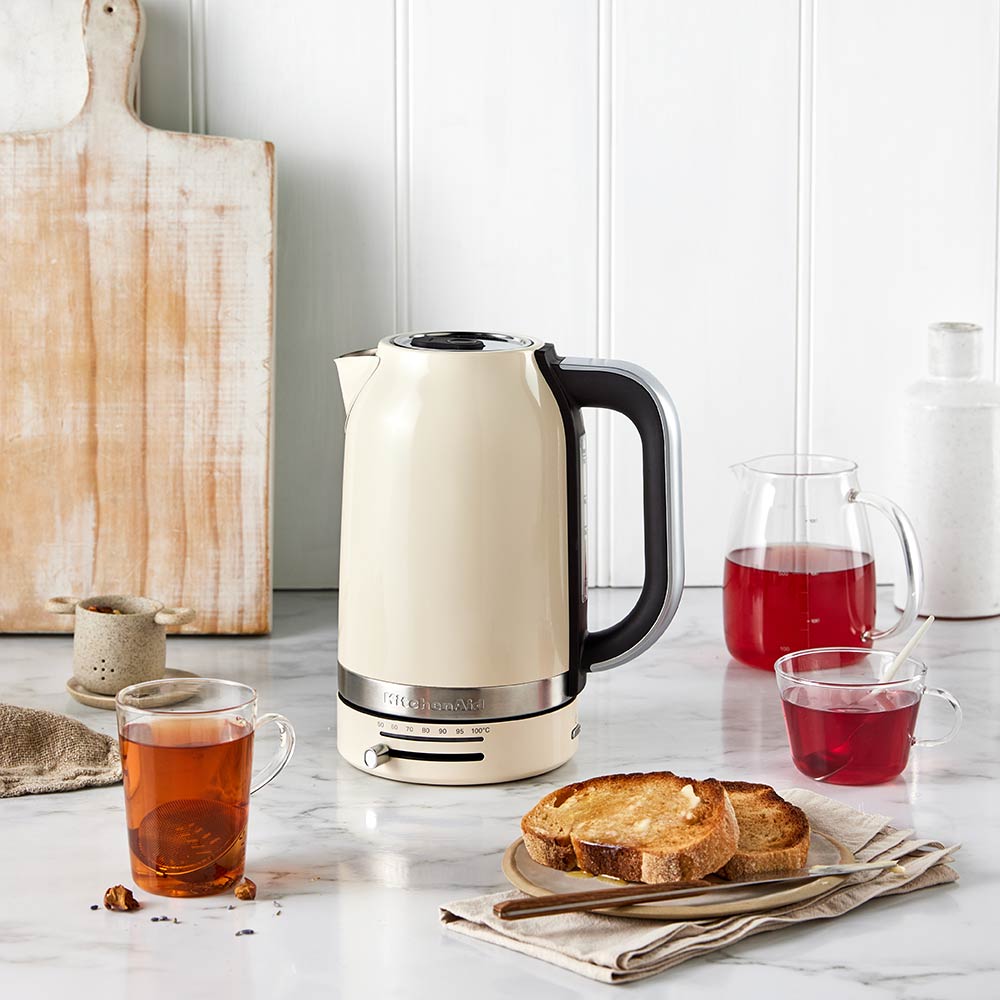 Elevate your breakfast possibilities with the KitchenAid® 1.7 L Variable Temperature Kettle, featuring automatic heating technology. It quickly and quietly boils water to the desired temperature, and automatically shuts off after boiling is complete. Built to last, the kettle is brushed stainless steel inside, and comes with a washable and removeable limescale filter to help reduce limescale. With functionality in mind, this kettle features a premium spout design for quick and controlled pour that won’t leave drips down your kettle. Available in three kitchen savvy colours: Almond Cream, Stainless steel, and Empire Red. Complete your kitchen with the coordinating KitchenAid® collection.