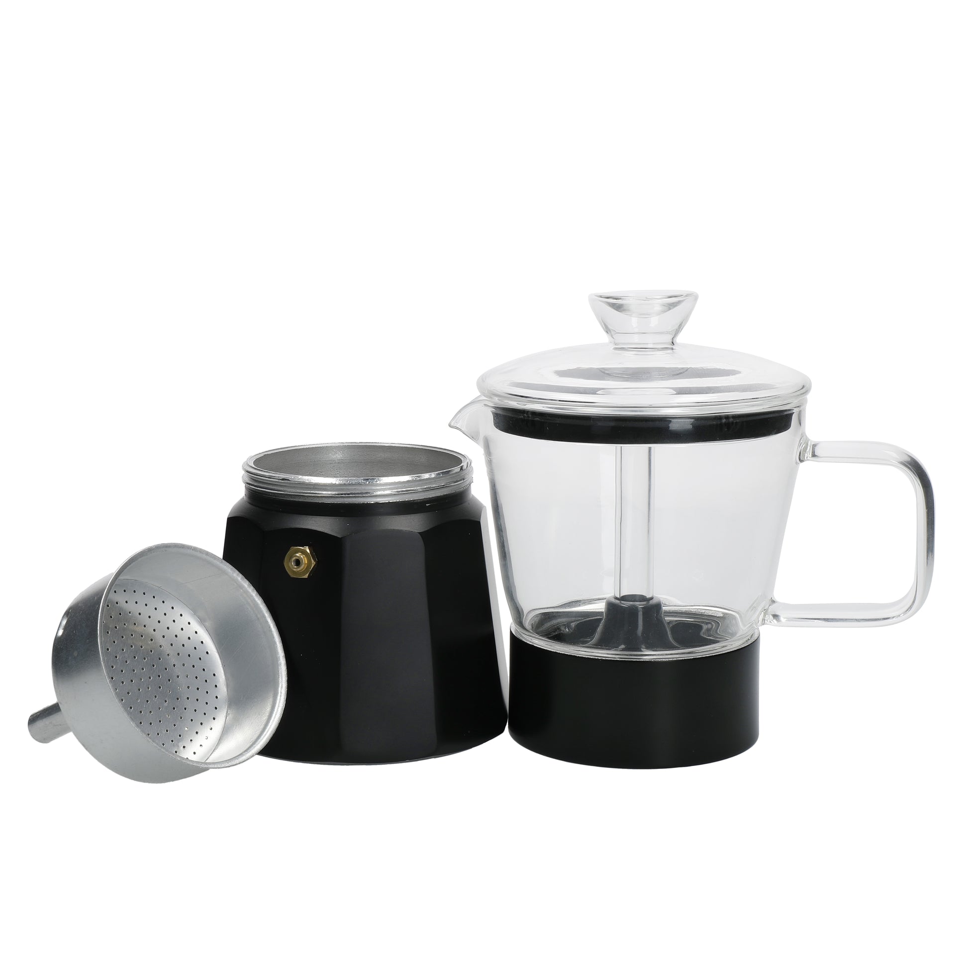 Embrace deep-rooted coffee making traditions with a contemporary twist with the La cafetiere Verona Six Cup Glass Espresso Maker. An innovative shock and heat-resistant borosilicate glass top chamber which allows you to watch your coffee bubble and rise! Based on the classic Italian design, the rest is exactly how you expect it. Made of high-quality, rust-resistant stainless steel with an induction-safe base, the espresso maker takes on heat really quickly, so your coffee will be hot and bubbling in no time. Simple to use, just add hot water to its lower chamber, fill the filter with coffee grounds, then heat on the stove until your cup is ready. The coffee maker is fitted with a stay-cool handle that makes it easy to retrieve from the stove, and it feels comfortable to pour. With 290 ml (5.8 fl oz) capacity, you’ll be able to make up to six espresso cups, so you can enjoy a relaxing cup of coffee with friends.