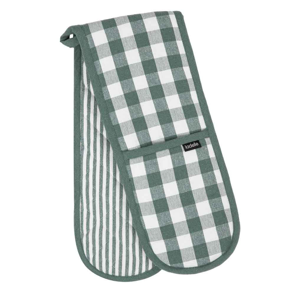 Discover Eco Gingham, a stylish kitchen textiles range blending gingham check with a modern pinstripe, woven from recycled cotton. Enjoy its lovely soft hand feel and subtle vintage wash, available in classic black and fresh green, ideal for sustainable kitchen style.