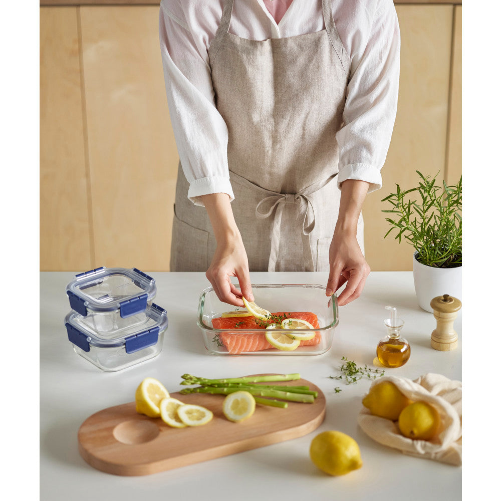 • Borosilicate glass containers with a stackable Tritan lid for more efficient storage and added durability• Lid designed with a 4.8mm-high edge for more stable stacking and made from Tritan which is robust, less prone to staining and transparent making it easy to see the contents