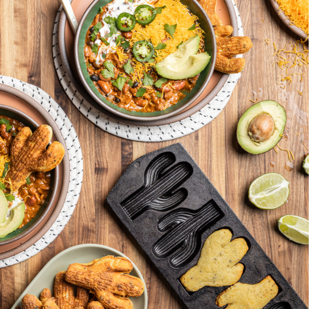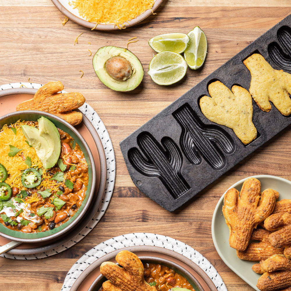 This funky Lodge Cast Iron Cactus Pan is perfect for baking shareable creations like cornbread, mini cakes, or brownies. The naturally seasoned baking surface provides an easy-release finish, and the durable cast iron won’t dent, bend, or warp. Bring fun cactus treats to the table for your next get-together.