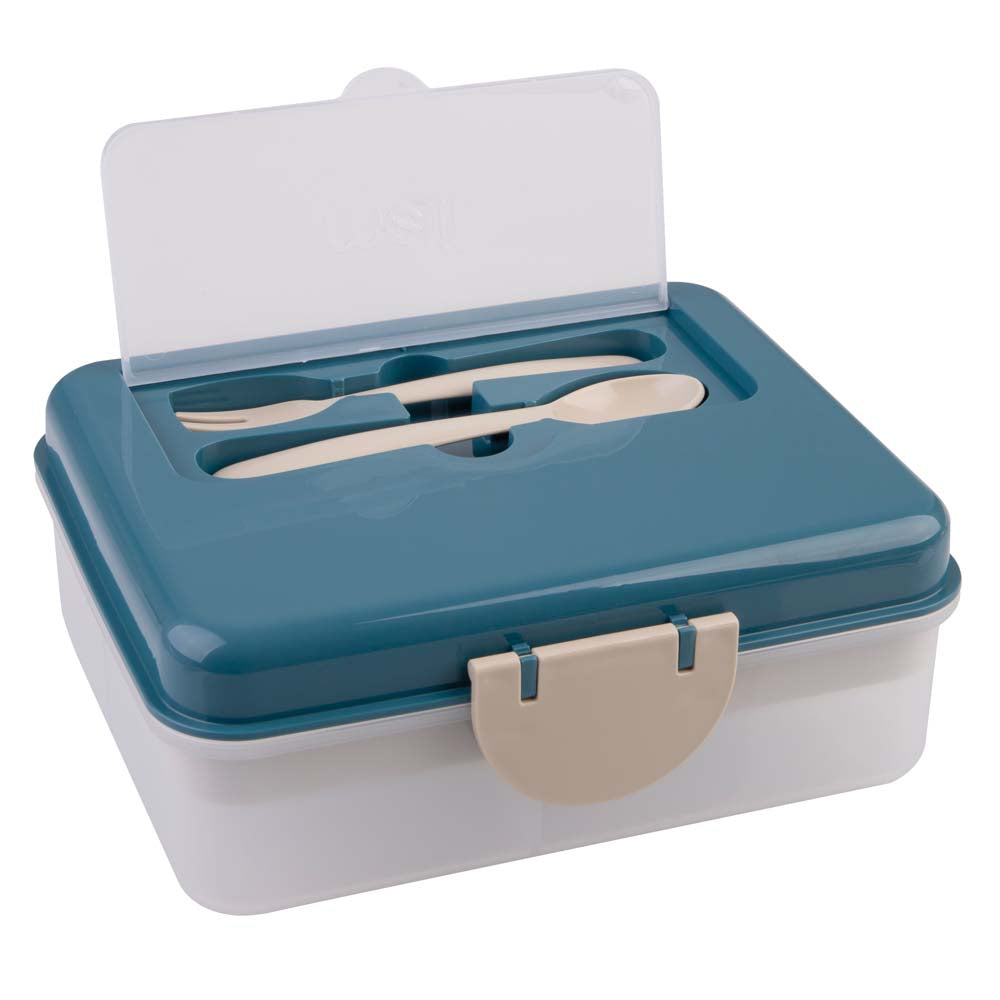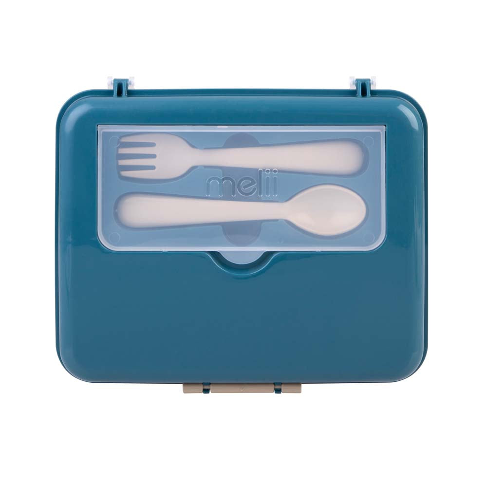 • It comes with a matching integrated spoon and fork, with a separate compartment in the lid.