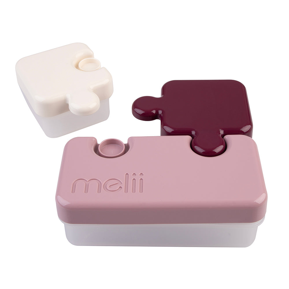 The Melii 3-compartment puzzle food storage container makes feeding fun! The three bento box compartments snap into each other, forming a fun and colourful puzzle toy. This playful bento box is perfect for children (and adults!) of all ages, including toddlers and kids, who love to fidget and play during snack and lunchtime. The puzzle latches make the lids easy for kids to open and close, which encourages independent feeding. Great for use at home, in a lunch box, for after-school snacks, or on-the-go travel. The 3 compartments allow parents to separate snacks, sandwiches, fruits/vegetables, etc. Ideal portion sizes for toddlers and children.
