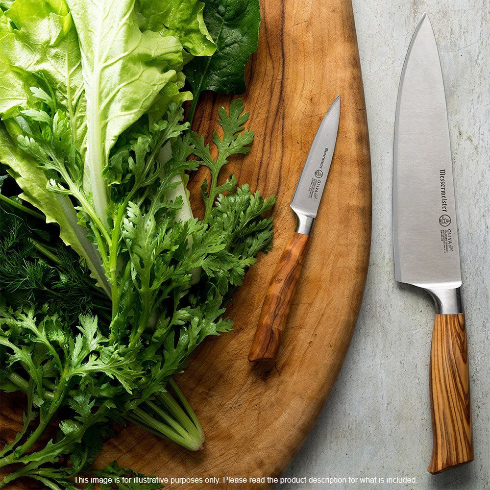 Upgrade your knife collection with the stunning craftsmanship of Messermeister and the Oliva Elite Chef & Paring Knife Set. Fully forged from the finest quality German steel with a complete tang and a stunning Mediterranean olive wood handle, the Messermeister Oliva Elite Chef & Paring Knives are as attractive as they are useful. Featuring an ingenious bolster-less design, the Messermeister Oliva Elite Chef & Paring Knives provides a simplified yet superior approach to cutting, sharpening, and honing tasks that makes use of the entire blade from heel to tip. Slice through meats, vegetables, roasts, and more with pure ease and in complete comfort.