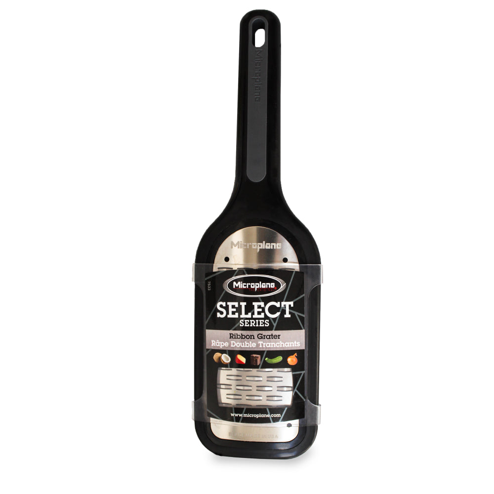 The high-performance Microplane Select Series Medium Ribbon Grater is the perfect accessory for both the professional chef and home cook. Microplane's sleek and ultra sharp Select Graters feature the company's stainless steel etched blades with extremely sharp edges that quickly and effortlessly cut through hard & soft foods without tearing. For added convenience and practicality, the graters are dishwasher safe and come complete with a clear protective cover for safe storage.