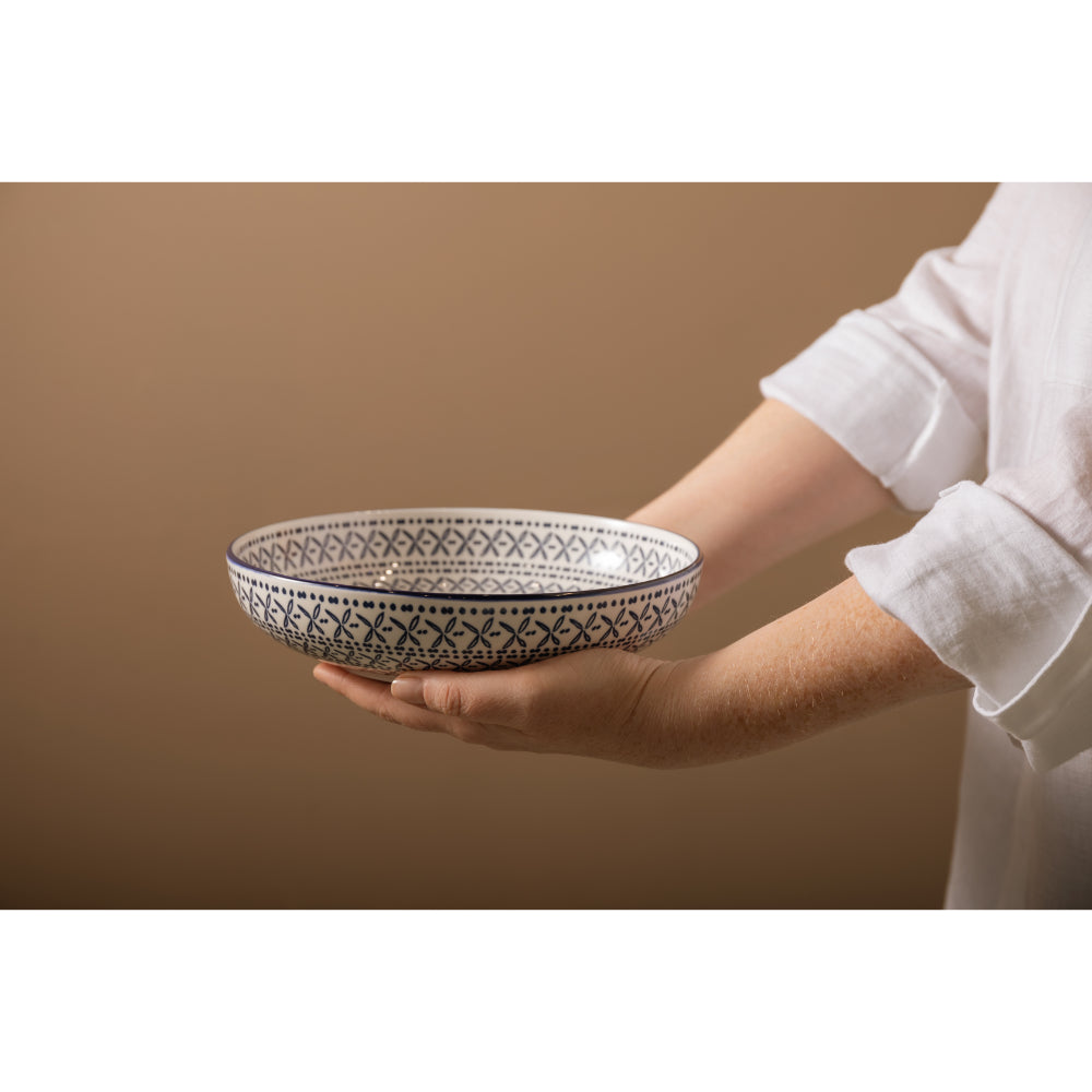 Vibrant stoneware bowls with a shallow design, the versatile Mikasa Ceramic Bowl is perfect for serving pasta, stews, salads, stir-fries, and more. Add a touch of charm to your tablescape. Beautifully designed with 12 eye-catching patterns, this bowl is perfect for everyday meals and special occasions. Designed for convenience, it’s microwave and dishwasher-safe, making it easy to use and care for.