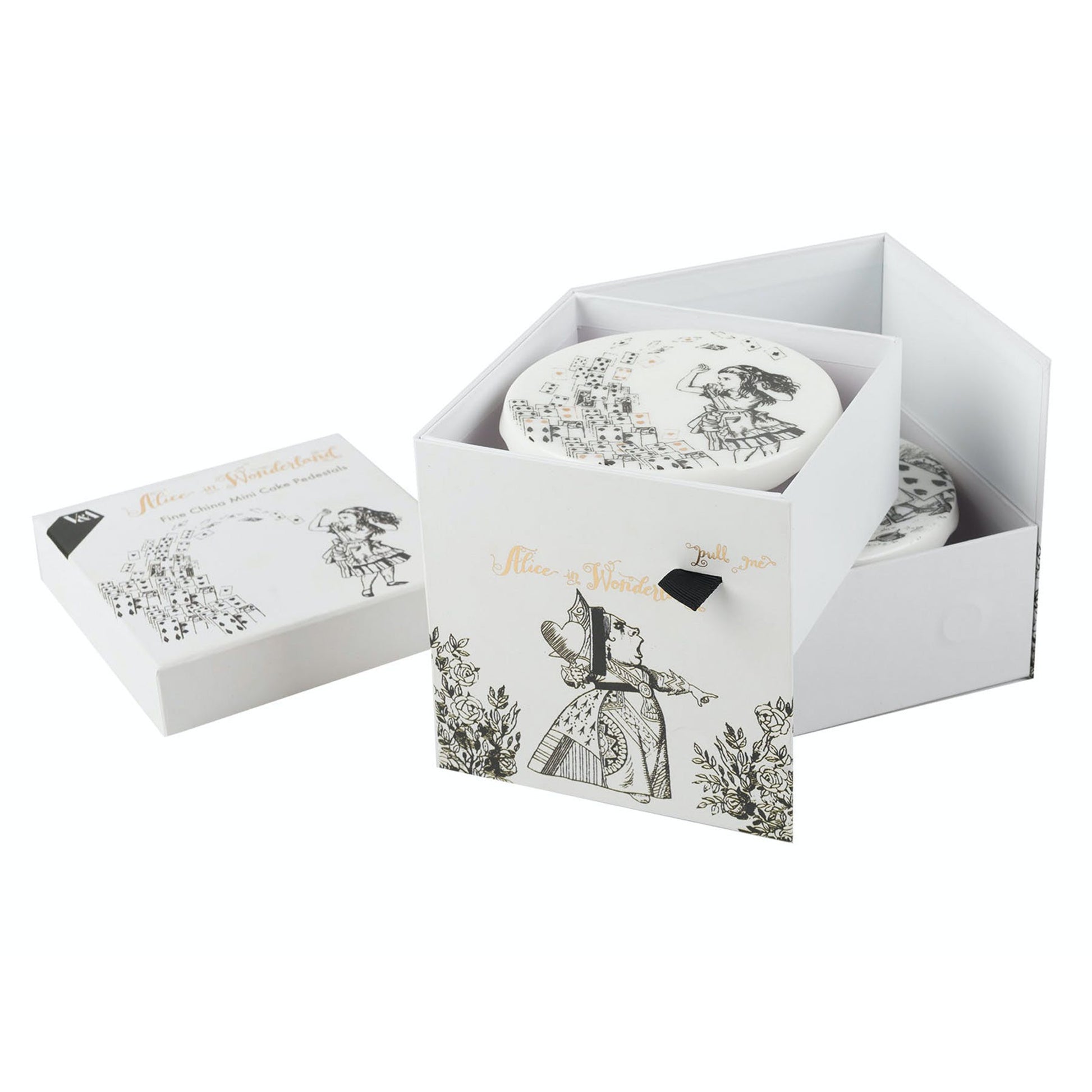 • A CURIOUS CAKE STAND SET, featuring sketches from a vintage Alice in Wonderland card game• IDEAL FOR AFTERNOON TEA. Use these mini cake stands to serve cupcakes, biscuits and more