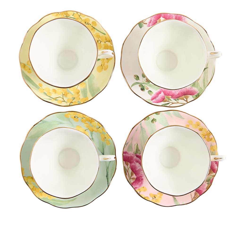 Miranda Kerr for Royal Albert Australiana Set of 4 Teacup & Saucers