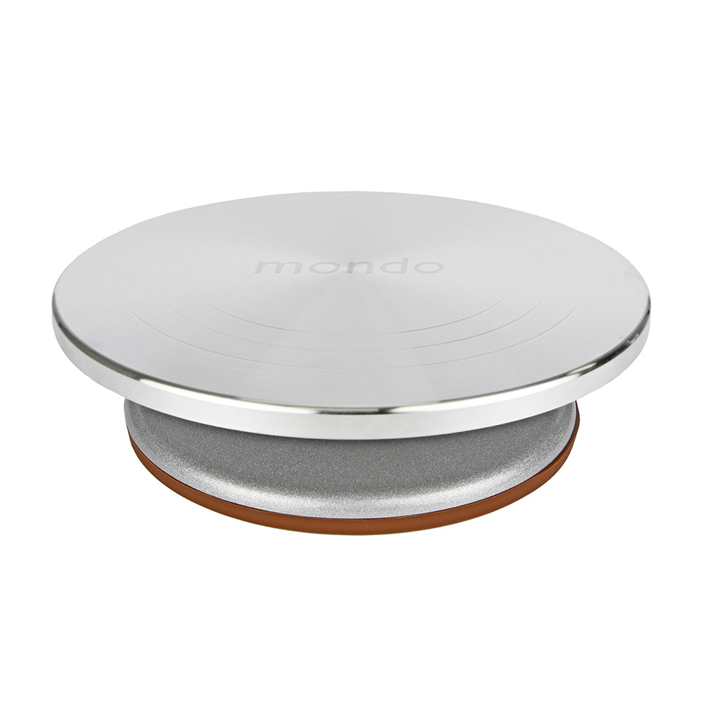Unleash your creativity and achieve flawless cake decorating with the Mondo Professional Turntable. This must-have decorating tool is designed for cake decorators of all levels with its sturdy aluminium construction and weighted nonslip base providing unmatched stability, and the double ball bearings ensuring a smooth and seamless 360-degree rotation with every turn. Positioning your cake is easy with the Mondo Turntable’s convenient centring guide markings and when it's time to showcase your creation, this versatile turntable can be used as a cake stand to display your masterpiece.