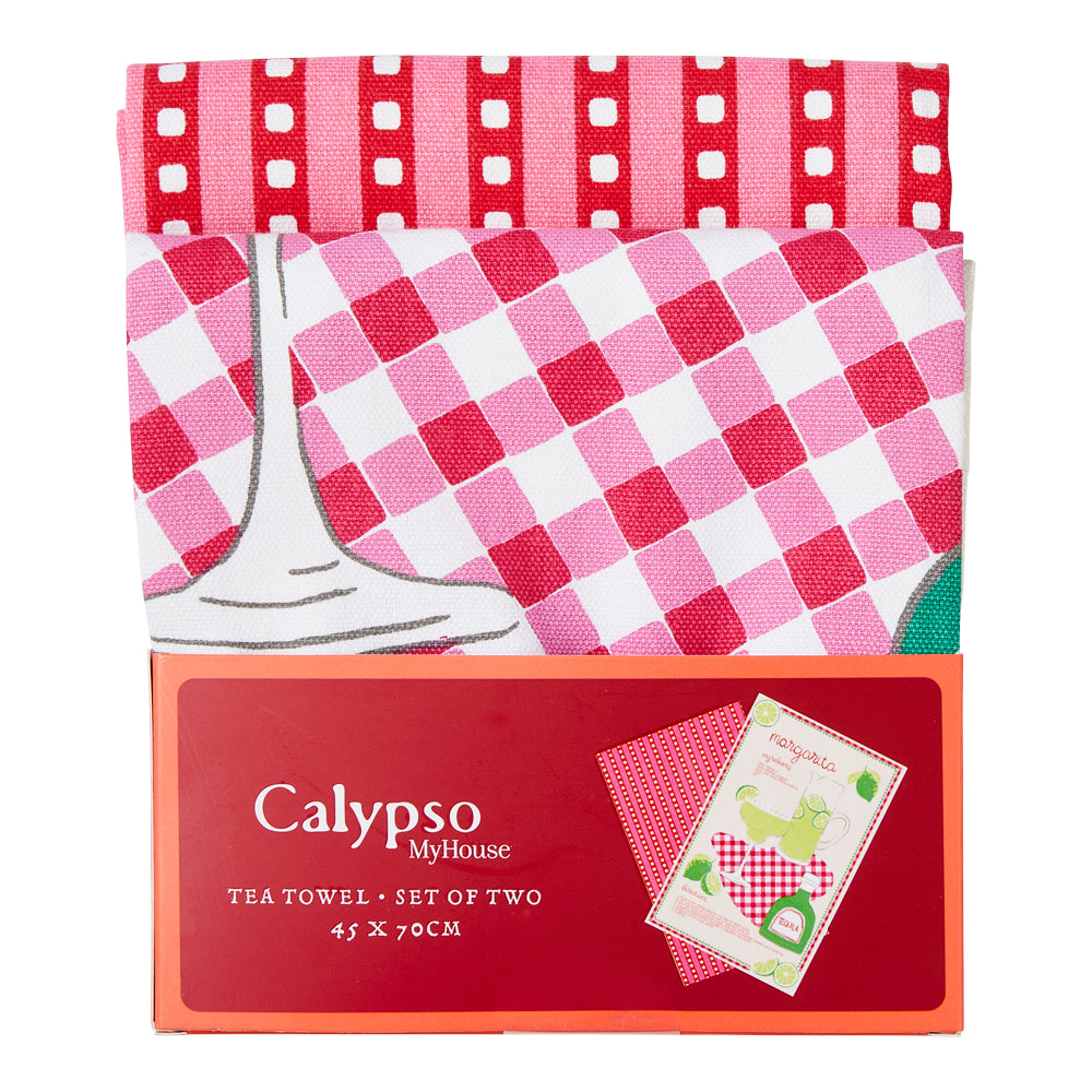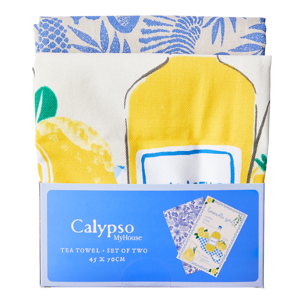 Add fresh summertime colour to your kitchen with the MyHouse® Calypso Set of 2 Tea Towels. This delightful set includes one statement towel featuring our exclusive hand-drawn Limoncello or Margarita designs, plus one coordinating solid-coloured towel. Perfect for gifting to bakers and home chefs, these machine washable tea towels pair beautifully with more pieces from the MyHouse® Calypso collection including aprons, drinkware, and servingware. Explore our curated range of cute gift ideas and stylish home decor from MyHouse® this summer.