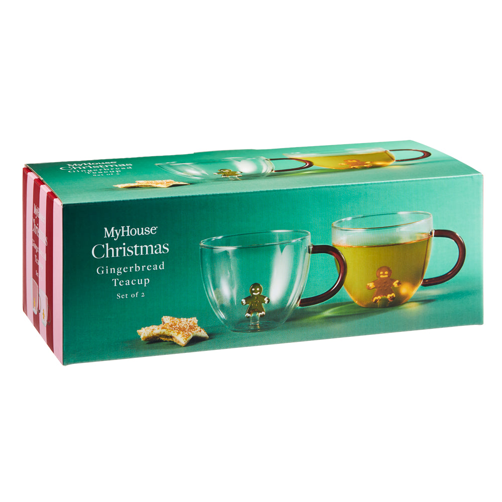 Add festive cheer to your teatime ritual with the delightful MyHouse® Set of 2 Gingerbread Teacups, each featuring an adorable gingerbread man nestled at the bottom. These transparent glass tea cups are a great stocking filler for loved ones who enjoy tea, or as a little gift for yourself this holiday season. Shop MyHouse® this Christmas for a range of baubles, hone decor, table linen, and bed linen perfect for your home this festive season!