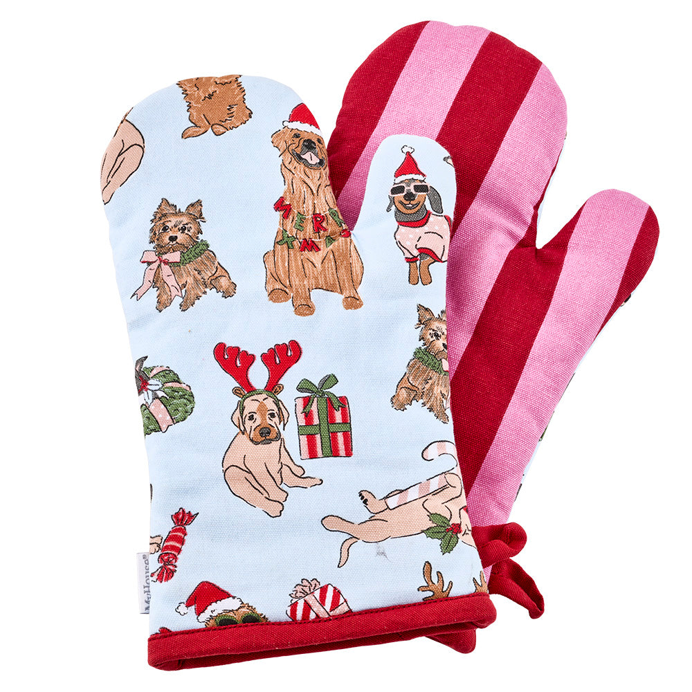 The MyHouse® Xmas Dogs Oven Mitts features adorable festive pups in Santa hats, reindeer antlers, and Christmas scarves complemented with red and pink stripes, it’s perfect for protecting your hands with cute flair while you whip up delicious Christmas treats for your friends and family. Pair with the matching apron and tea towels for a complete festive kitchen accessory set. Shop MyHouse® this Christmas for a range of baubles, hone decor, table linen, and bed linen perfect for your home this festive season!