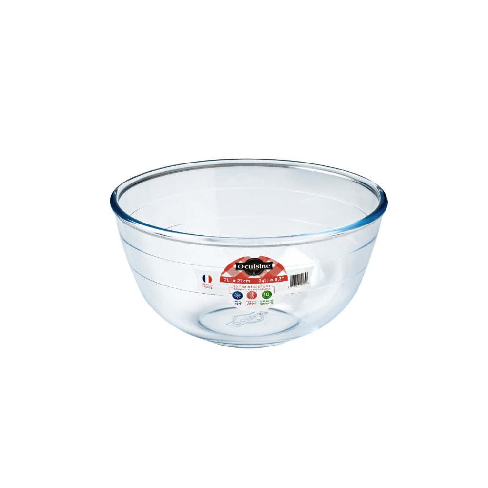 O cuisine features high quality and performance French-made cookware, suitable for everyday use in the kitchen. The O Cuisine Mixing Bowl is made with borosilicate glass, with a thermal shock of 220°C, it is the only glass that allows direct usage from freezer to oven.