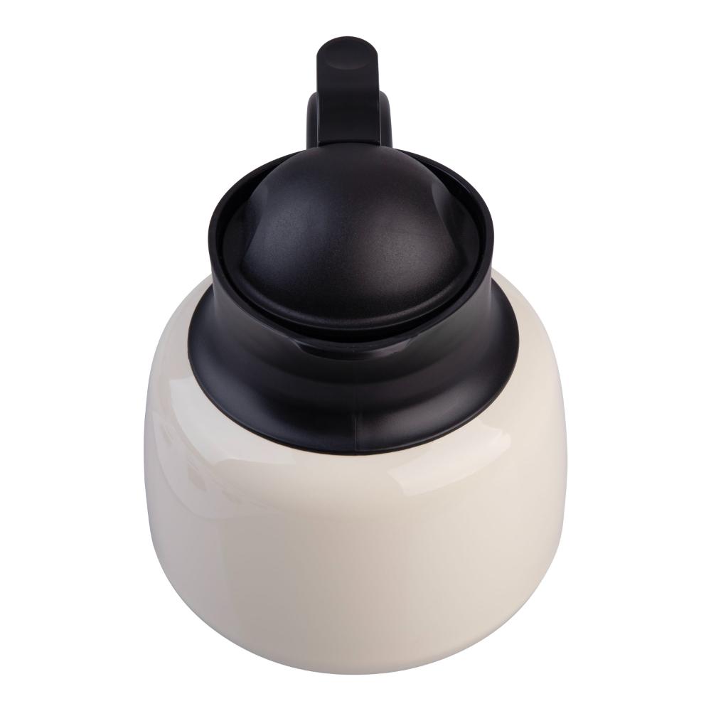 • Fine mesh tea strainer; comfortable ergonomic handle; easy-pour spout; press open valve
