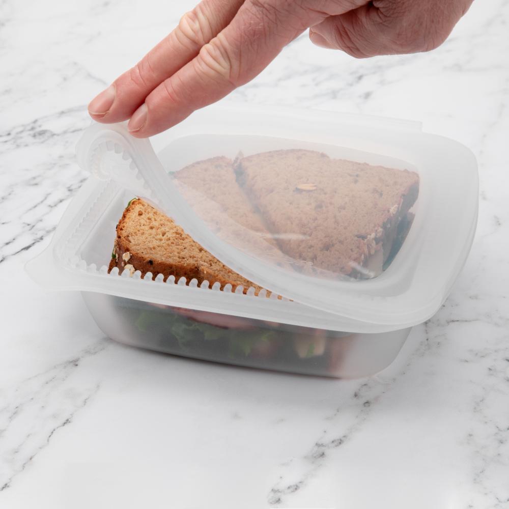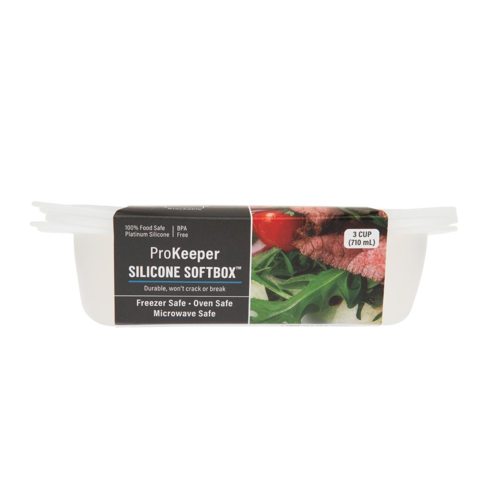 The ProKeeper 3 Cup Silicone SoftBox™ features a leak-proof zipper seal, making it perfect for meal prep, lunches and snacks on-the-go. Built to withstand up to 204°C, it’s safe for use in the oven, microwave and freezer. The Silicone SoftBox is stackable, using minimal space in the fridge or freezer. The lid is connected to the container, allowing for simple storage and no chance of lost pieces. Dishwasher safe for quick cleanup, this container makes food storage easy.