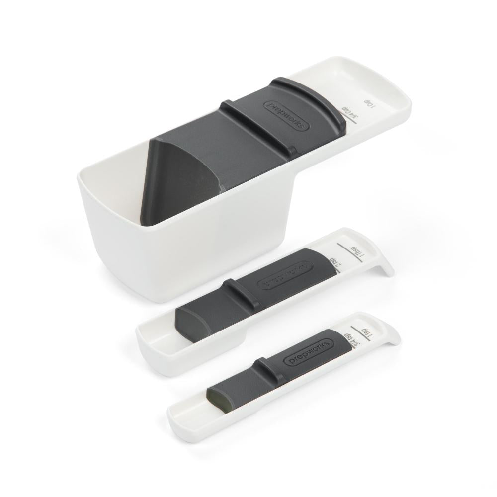 Simplify your kitchen tools with the Progressive Adjustable Measuring Cup & Spoon Set. Designed to replace multiple traditional measuring tools, this set features a smooth slide mechanism that lets you easily adjust to your desired measurement. Clear, easy-to-read markings ensure precision for both cooking and baking. The set disassembles effortlessly for quick, thorough cleaning, making it a convenient and space-saving solution for everyday use.