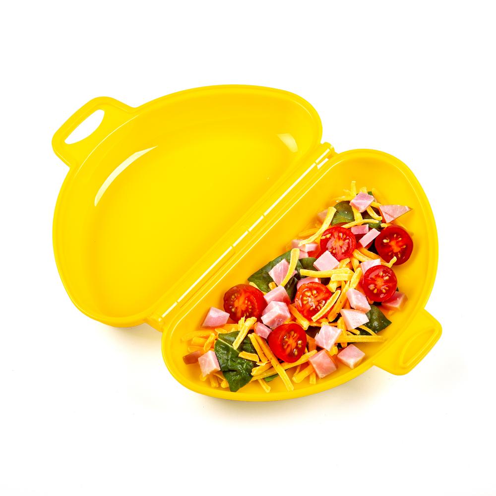 Designed in the USA the Microwave 4-in-1 Egg Cooker by Progressive cooks eggs four different ways including an omelette, fried for a breakfast sandwich, poached and transformed into egg bites for a muffin. The set includes poached egg and breakfast sandwich inserts and is crafted from durable materials to withstand high heat. BPA free and Dishwasher safe.