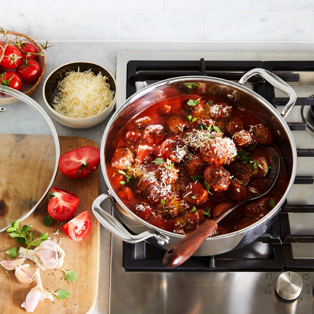 • Premium 18/10 stainless steel interior, rapid heat conducting aluminium core and magnetic stainless steel exterior• Supreme heat distribution and durability
