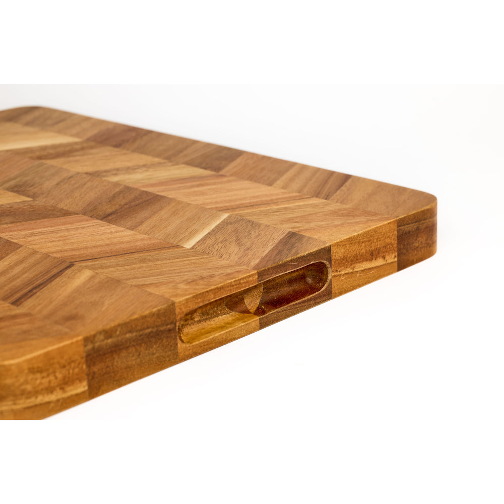 • The bold, geometric herringbone pattern showcases artisanal craftsmanship and adds visual interest to your kitchen• Acacia Wood is naturally tough and resistant to moisture, yet gentle on knife edges while providing long-lasting performance